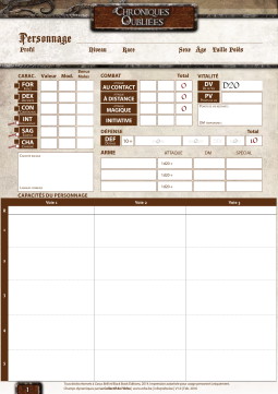 Basée sur la fiche originale de Casus Belli, le Collectif de l'Orbe vous propose une version entièrement numérique et dynamique de la fiche de personnage pour Chroniques Oubliées Fantasy.